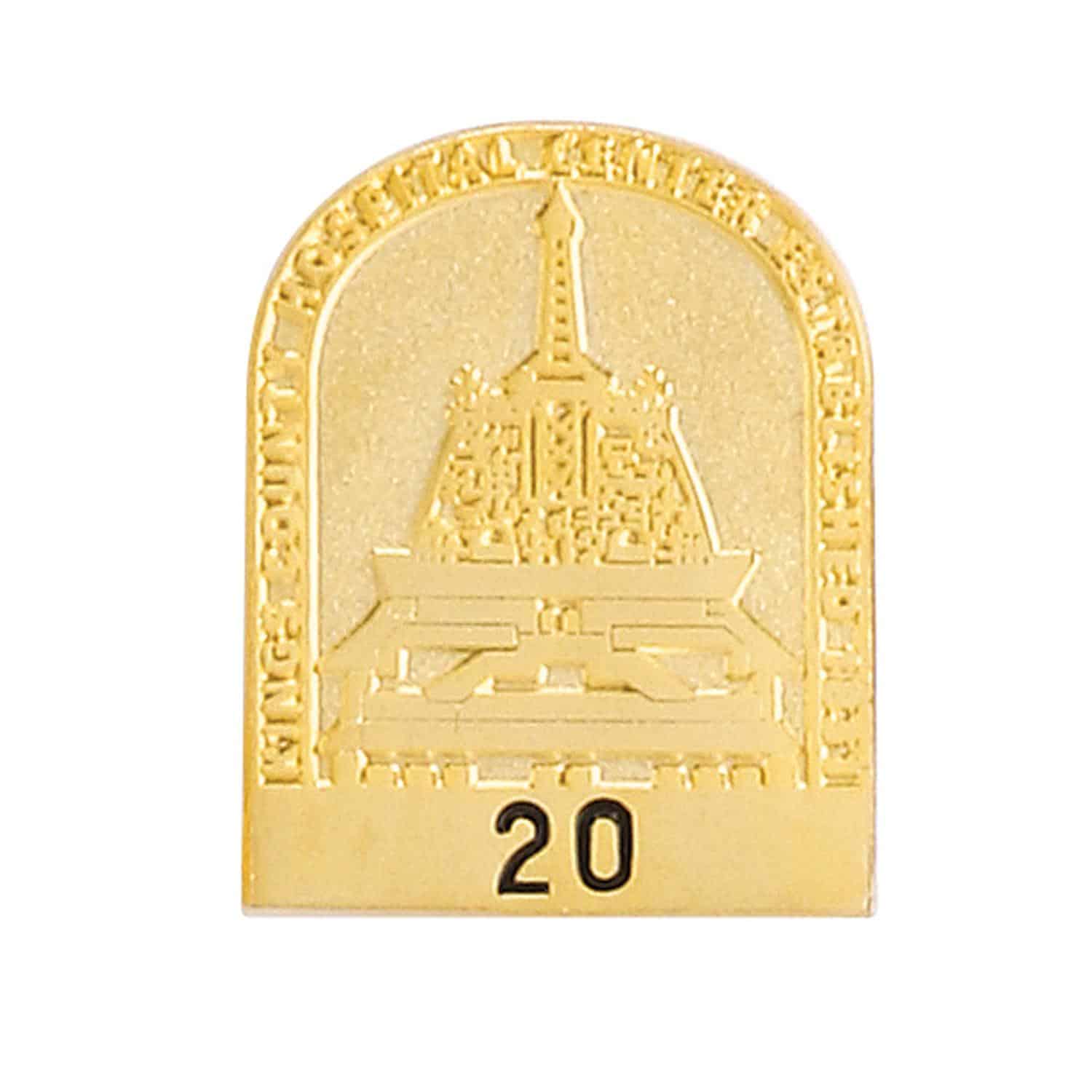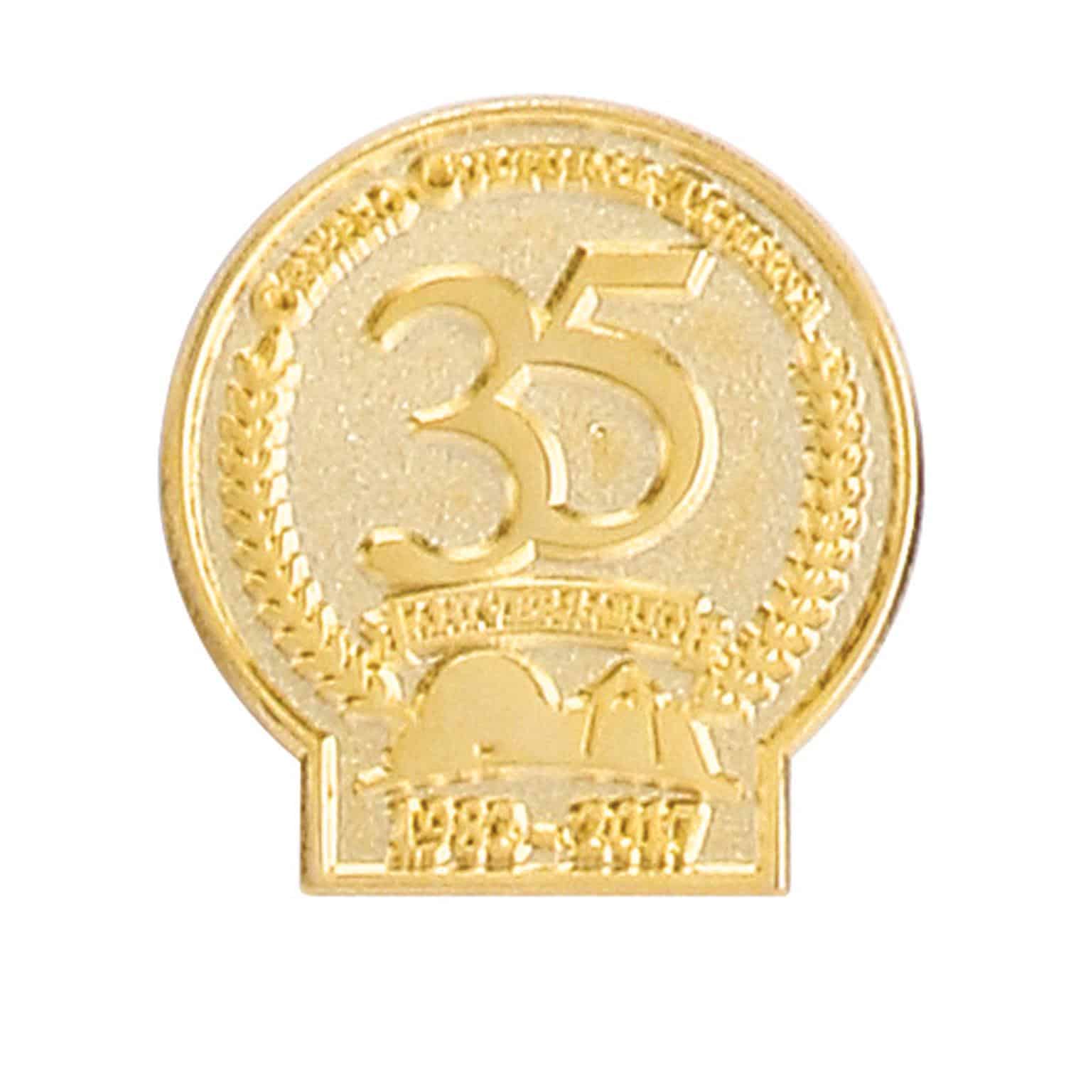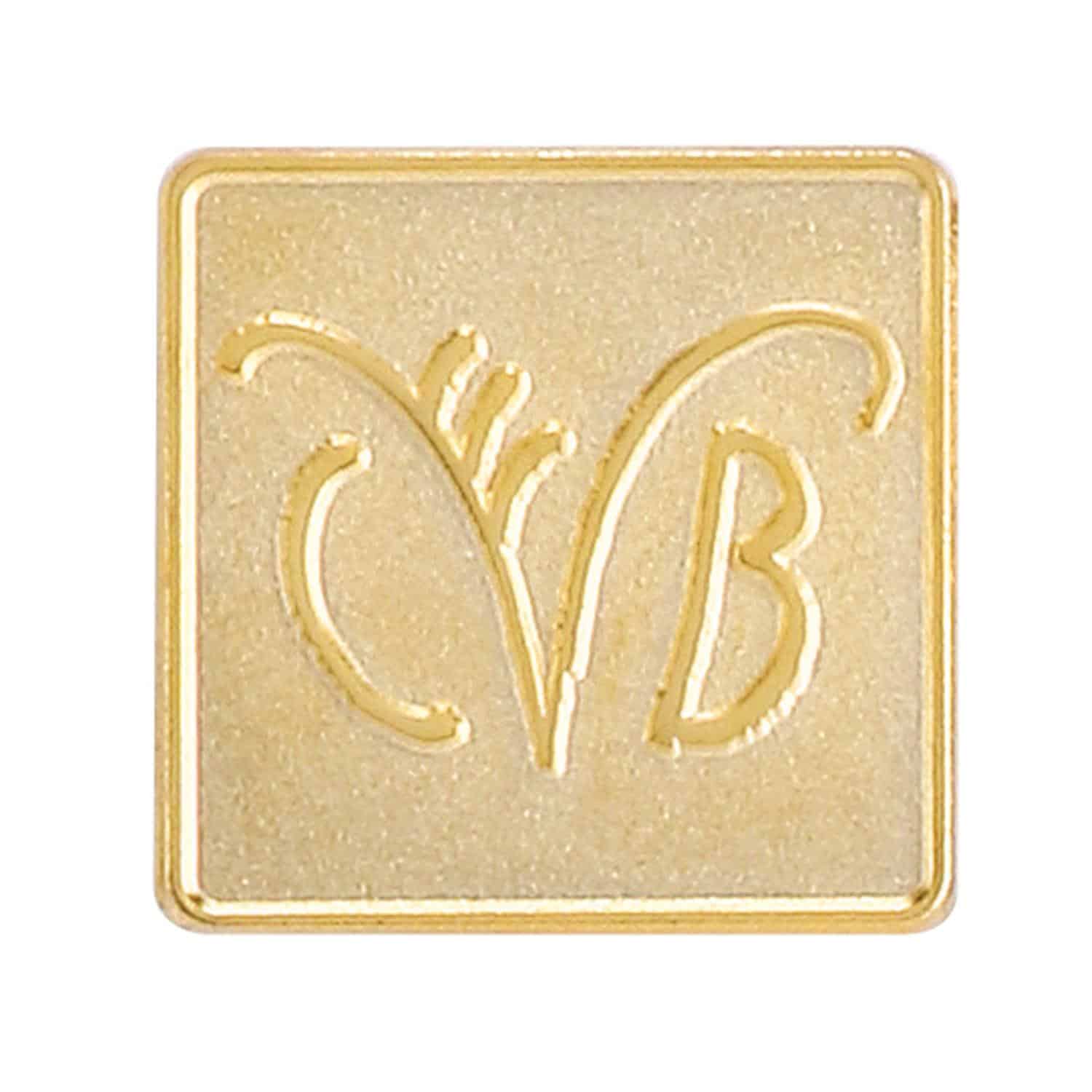 Sandblasting adds a great contrast between the raised and recessed areas of the pin. The raised areas have a brilliant high polished finish, while the recessed areas are matte textured. Includes 24kt gold, silver or copper plate. Custom shape and butterfly clutch backing. Complies with Prop 65. 1 1/2″ W