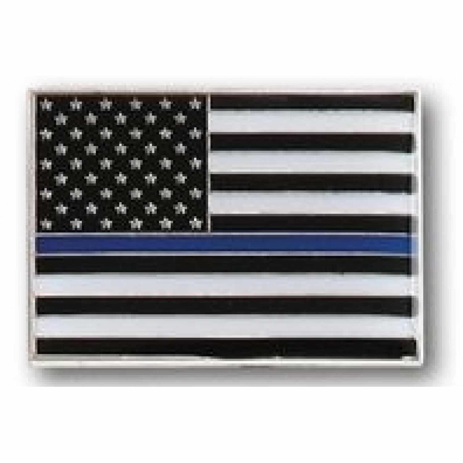 Show your support of police and law enforcement. Thin Blue Line USA Flag. Blue Lives Matter. Stocked and ready to ship. Includes butterfly clutch backing.